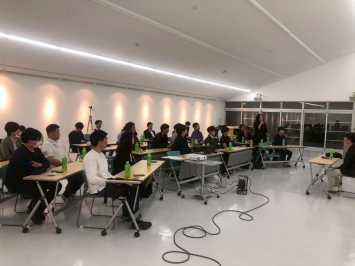 結城君の話を聞くために新入会員だけではなく他委員会メンバーとオブザーバー合わせて 計34名と全3回のオリエンテーションプログラムの中で最多の参加数となりました。