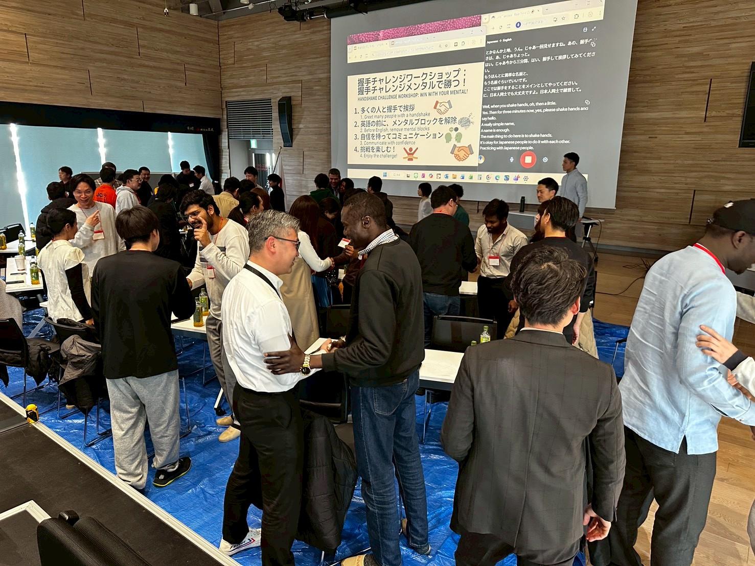 西川様のお話には、国際大学の生徒さんたちも大きく頷かれていました。握手を実践するワークは、非常に盛り上がりました。