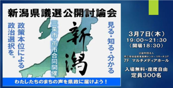 衆議院議員選挙、市長選などが開催される時期に合わせて、燕三条青年会議所主催で公開討論会を開催しております。
