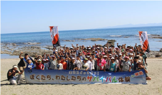 画像は2017年に実施した、「全力スイッチオン ~ぼくたち、わたしたちのサバイバル体験~」です。粟島という普段とは違う島で寝泊まりして、自分一人じゃ何もできない事を「あえて」経験することで、友だち、家族、仲間の素晴らしさを体感、優しく強い人間に成長してもらいたいという願いを込めて実施しました。